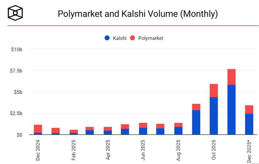 Early last week, it was revealed that Polymarket volumes shown on most public dashboards were overstated due to a double-counting error, where both sides of each trade were counted, inflating reported totals. After correcting to the industry-standard single-side measurement, historical prediction market volumes are meaningfully lower. For example, November 2025 combined Polymarket and Kalshi volume now stands at $7.68B versus over $9B previously, with prediction markets at 0.47% of spot volumes. While the fix reshapes reported market share, the core story remains intact: prediction markets continue to scale, deepen liquidity, and grow on a more accurate baseline.